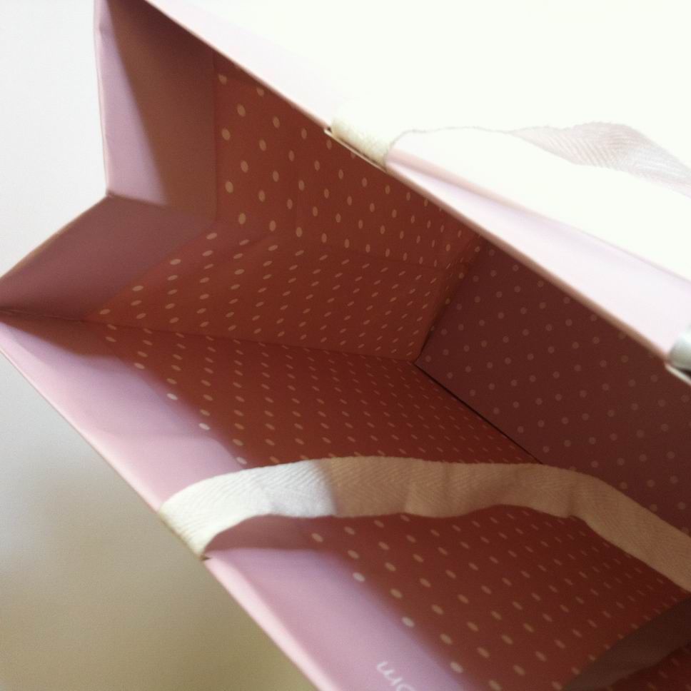 5)底部口部有350克白板纸垫衬加固,袋子折痕在底部。